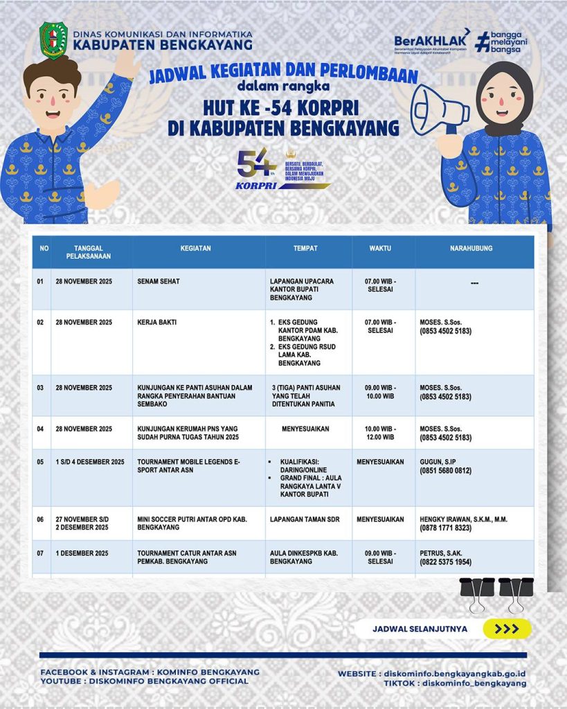 Here is the schedule of activities and competitions for the 54th Anniversary of KORPRI in Bengkayang Regency.