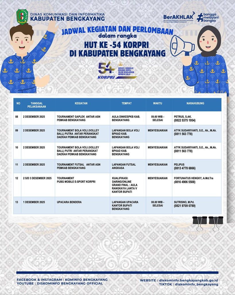 Berikut jadwal kegiatan dan perlombaan dalam rangka HUT ke-54 KORPRI di Kabupaten Bengkayang.