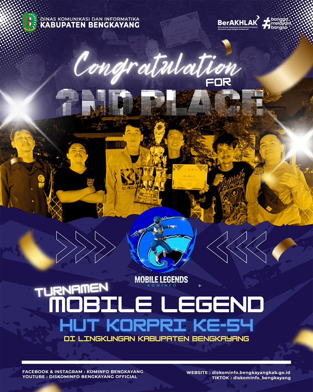 Congratulations to the Kominfo Bengkayang Mobile Legends Team for securing 2nd place in the Mobile Legends Tournament held in celebration of the 54th KORPRI Anniversary within the Bengkayang Regency Government.
